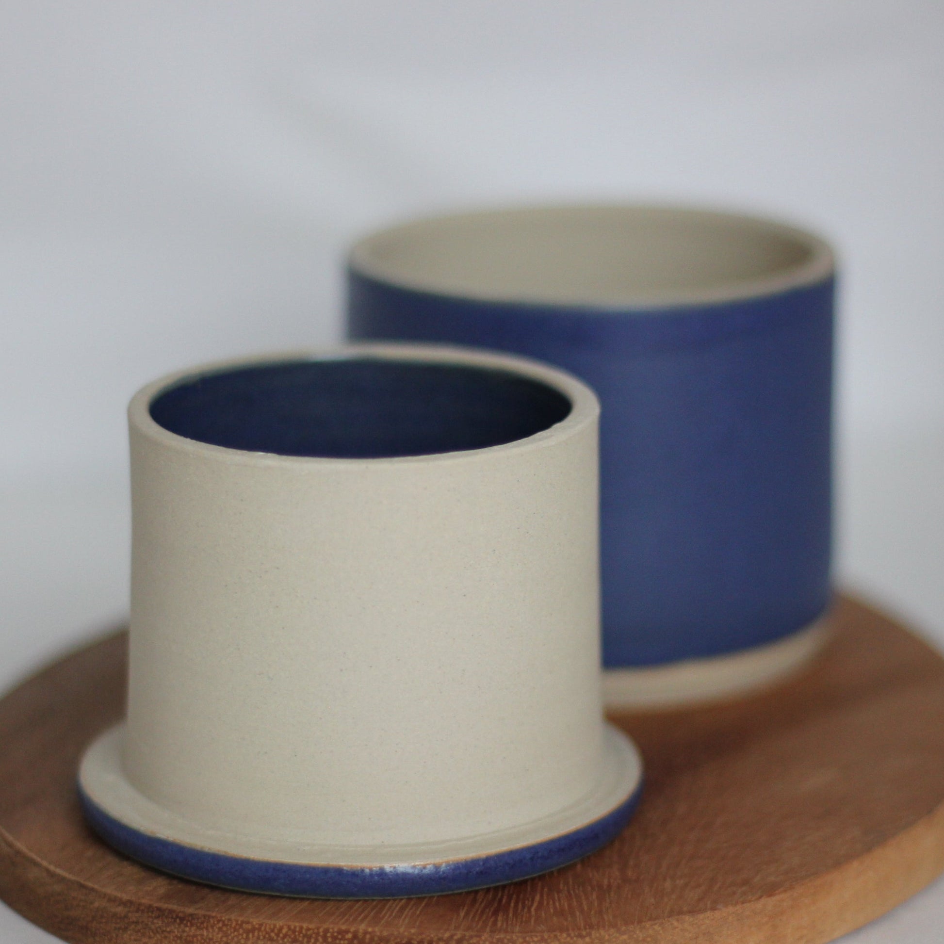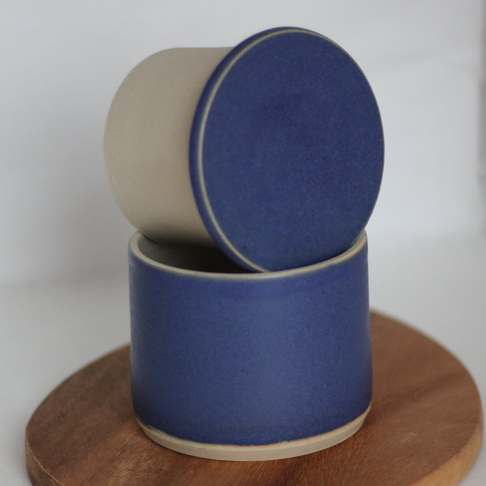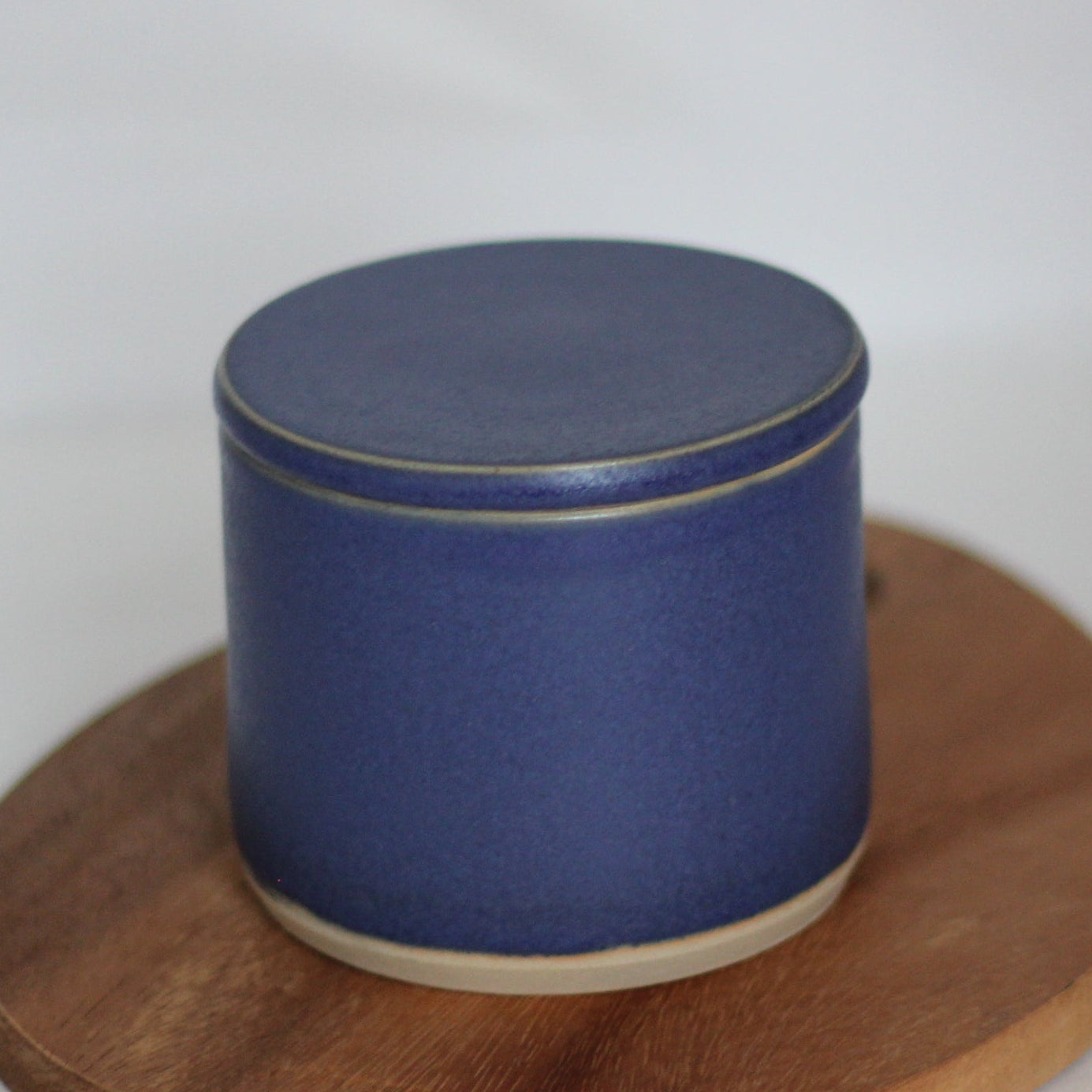 Smørklokken er håndlaget (dreid) i lys beige steingodsleire med silkematt blå glasur. Den er glasert utenpå og i kammeret der smøret ligger. Resten av smørklokken er uglasert.