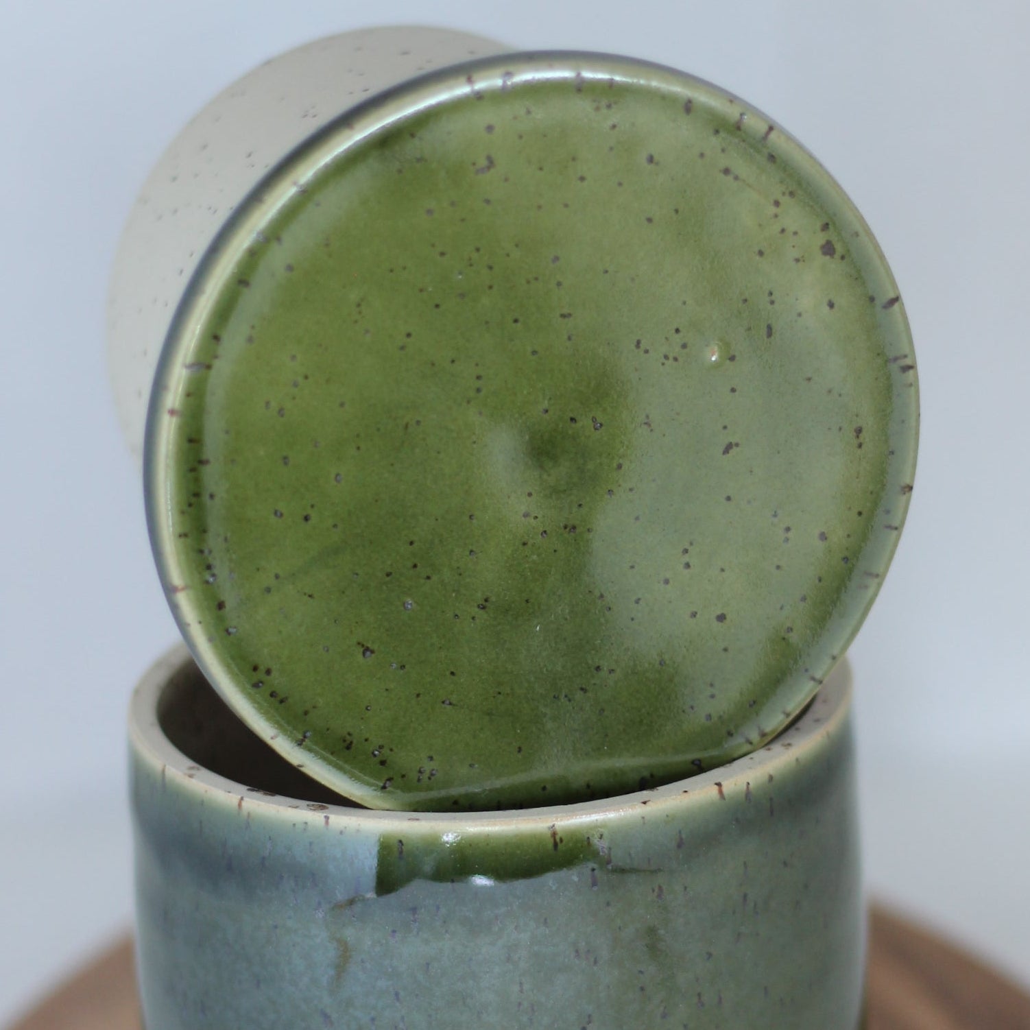 Den spettete leiren og glasuren jeg bruker gjør at hvert produkt kan få litt ulik karakter og litt ulike fargesjatteringer. Spettene i leiren kan av og til gi små fordypninger i glasuren.